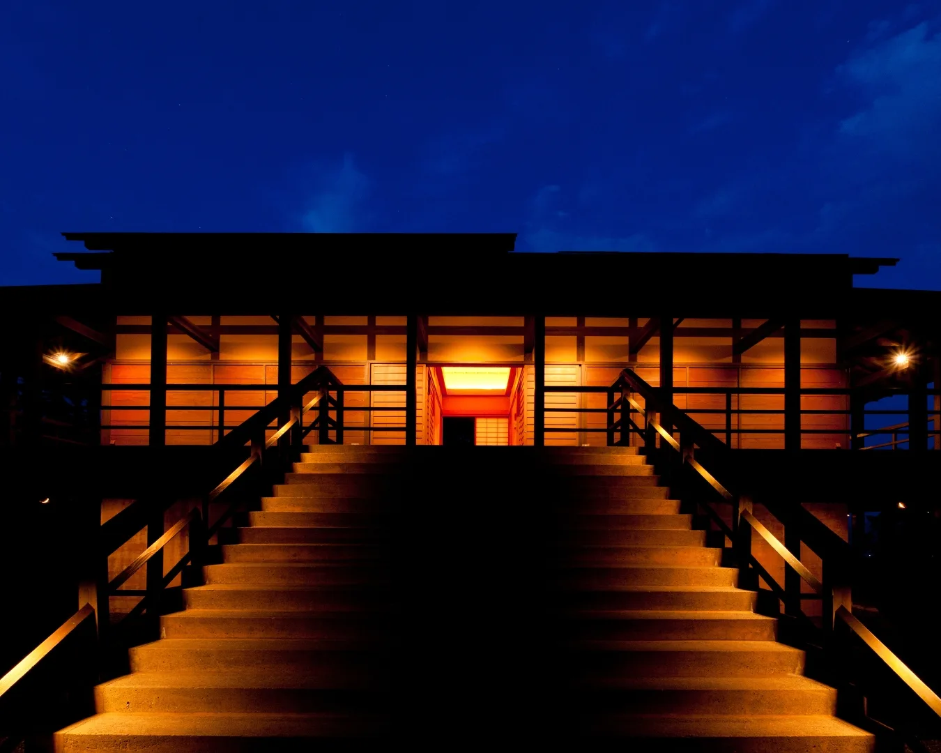 The climate greatly affects your House of Light encounter, as the key attraction involves retracting the roof in the main tatami room to experience the twice-daily light show. It’s like staring at Turrell’s Skyspace at Hobart’s MONA, except you’re lying on a mat, surrounded by the Japanese countryside. The first light show is programmed for sunset and the other for sunrise – hence setting my alarm for 3.53am.